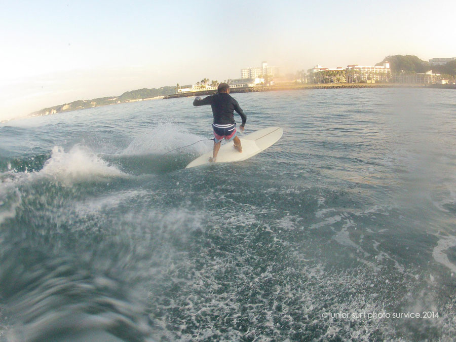 自身で削ったMabo Custom shape surfboardsで懐かしむように波乗り