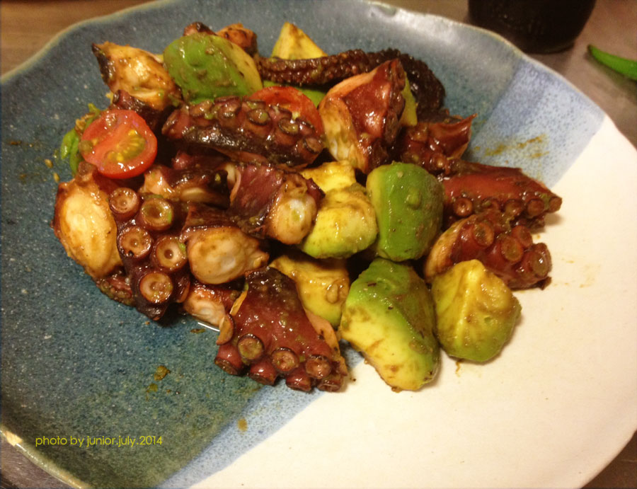俺は前からやりたかった地蛸とアボカドのバルサミコソース炒め