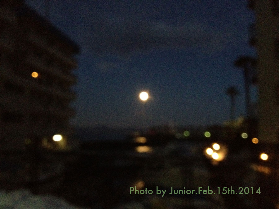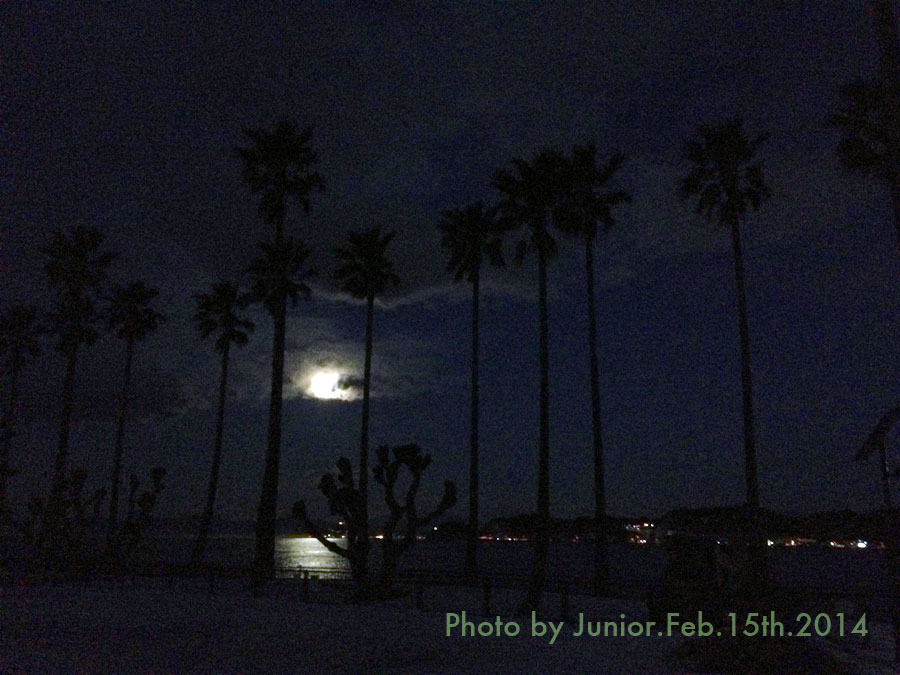 椰子の間から妖しく光る満月が姿を現す