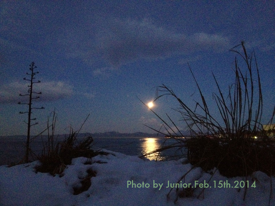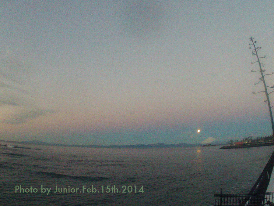明るくなると満月は恥ずかしがるかのように白富士の7合目に沈んでいった