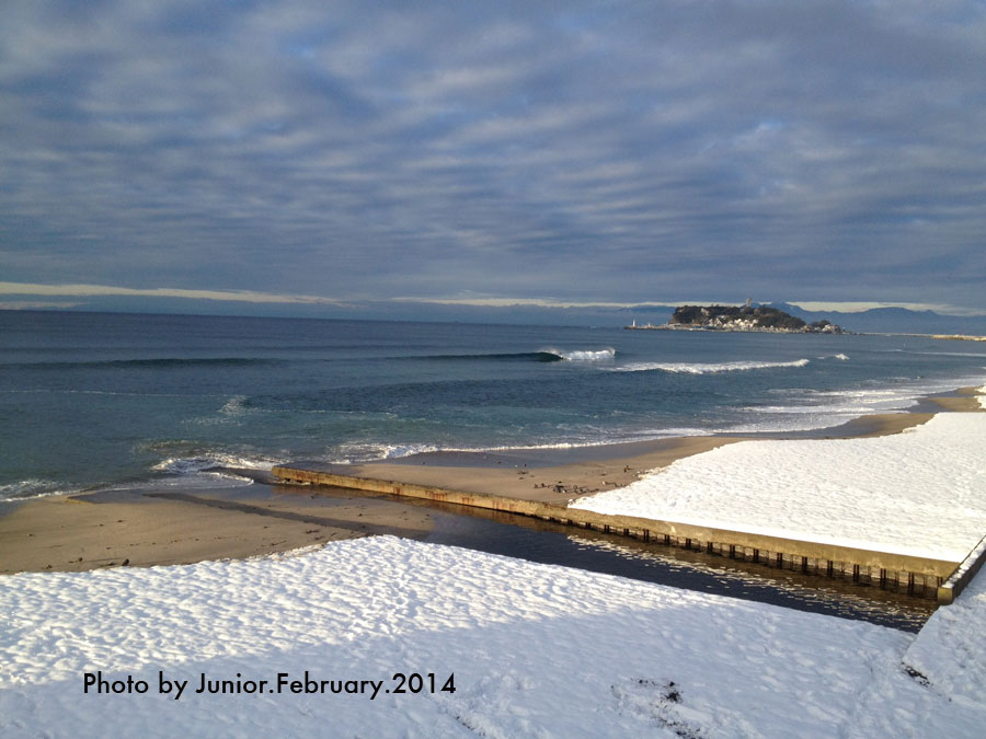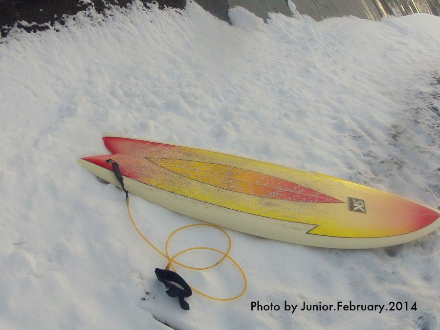 完璧な波を目にして凍った階段を焦りながら降りて行った
