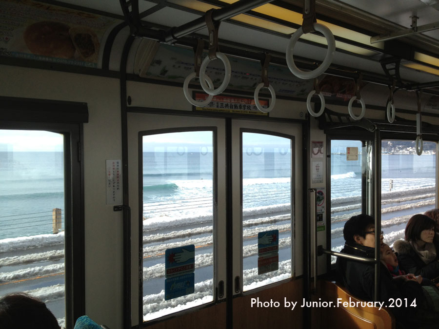 車窓から見えるしっかりとした筋と砕けた白波が心拍数を上げる