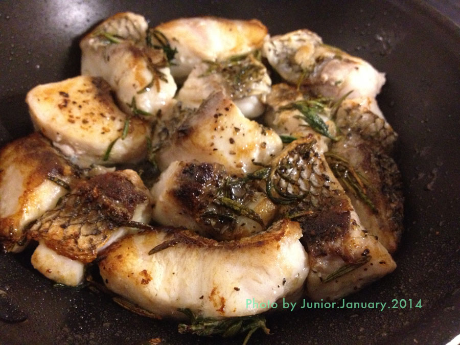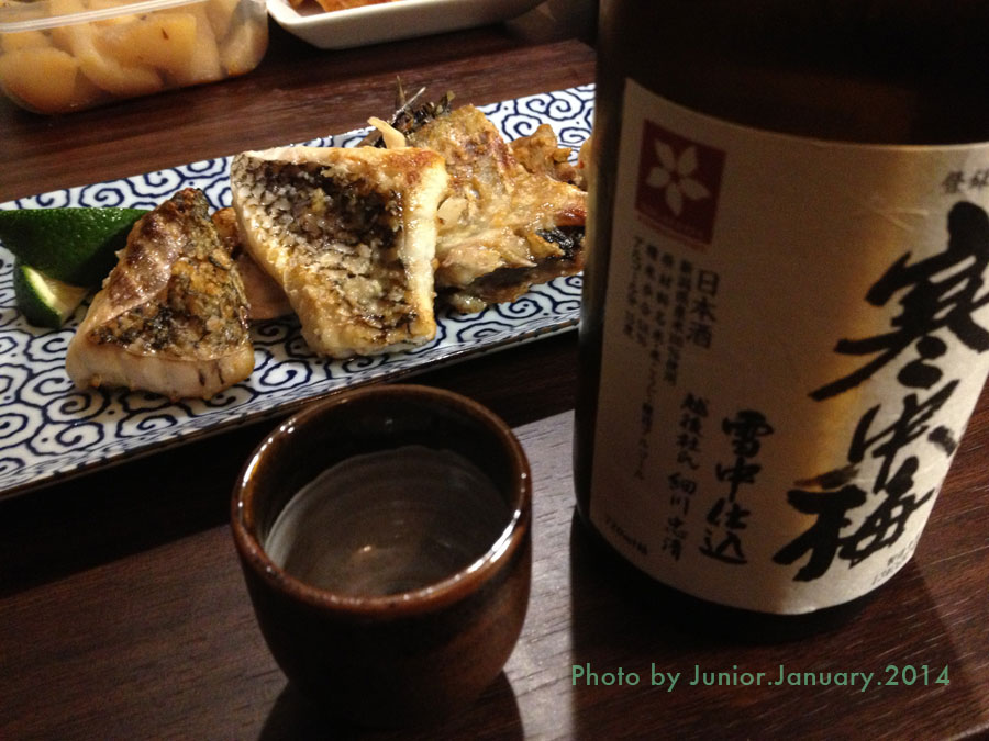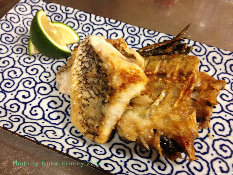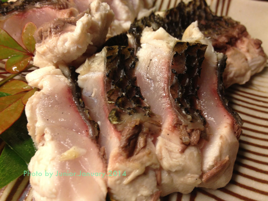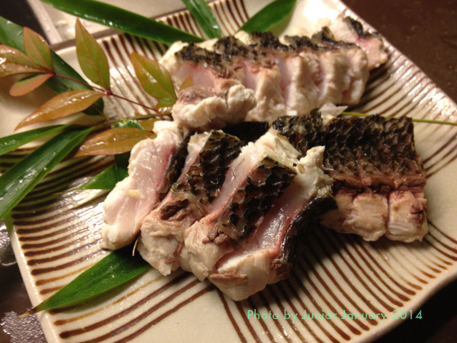 腹の一番脂の乗ったアラは強めの岩塩を振って皮パリまでグリルで焼く