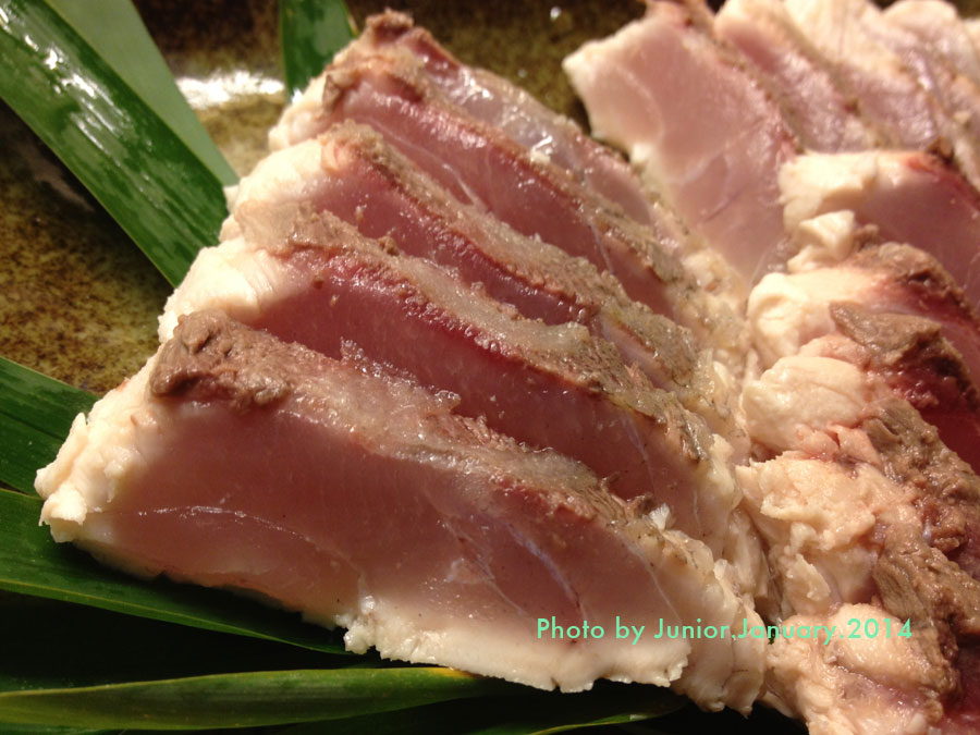 裁いてから一晩寝かした身を炙る焼き霜造り