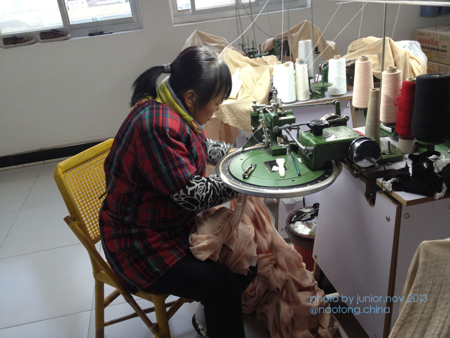 横編みのニット工場では婆が一目一目拾って静かにリンキングする