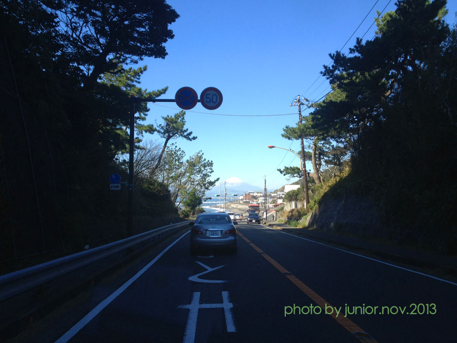 切り通しから富士がくっきりと姿を現す