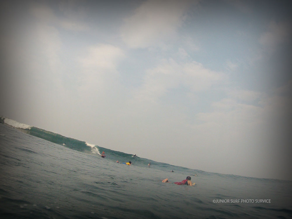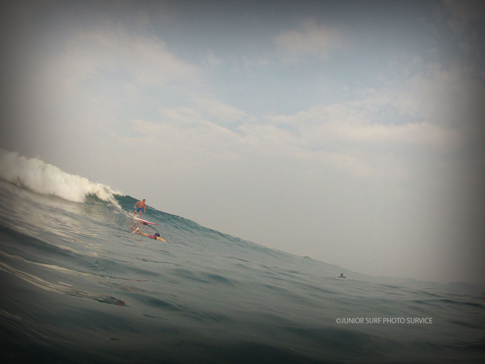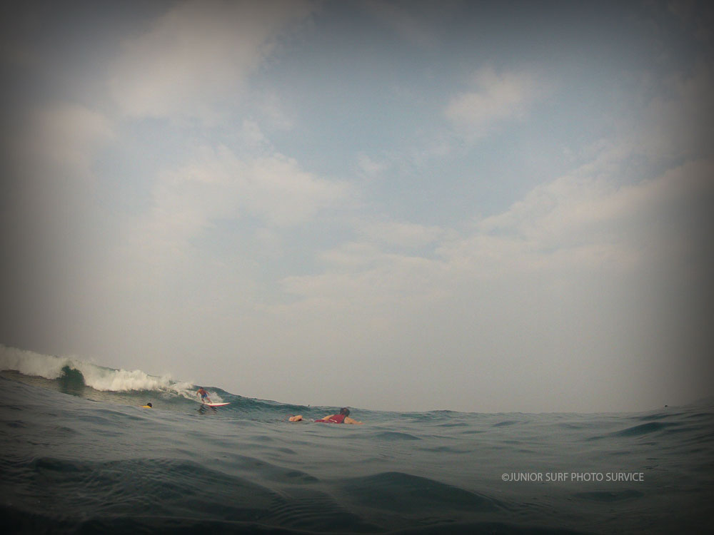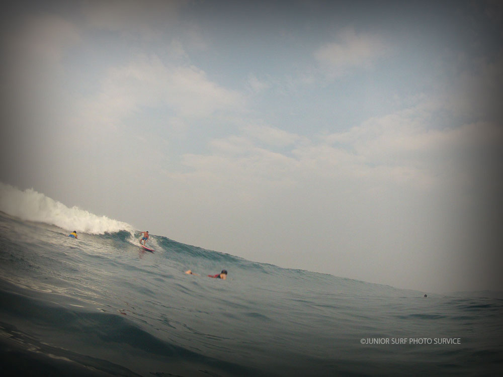 いち早く沖へ漕ぎ出て山のように迫る次のSETに板と斜面の角度を合わせると