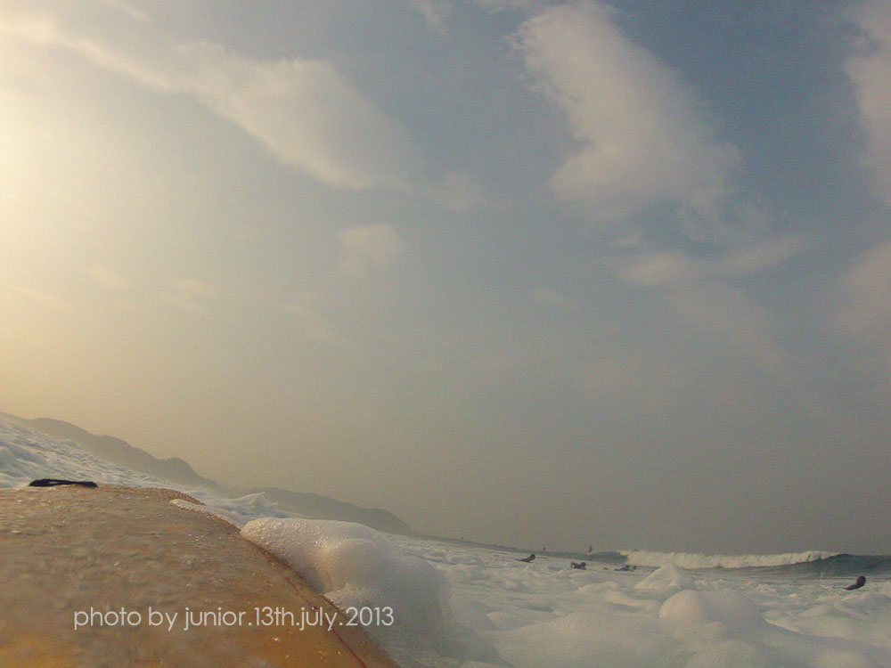 この朝 Mr.COLORSの腕に流れてきたロングボードが直撃した模様
