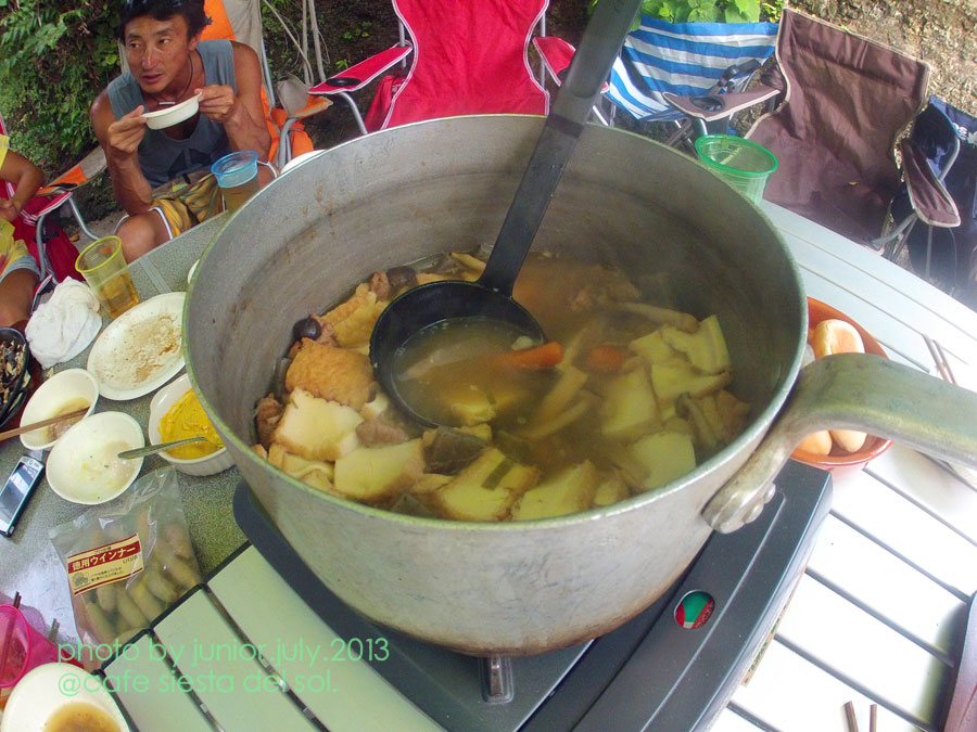 オギノ式モツ煮で摂氏33度の中 ヒッヒッフー