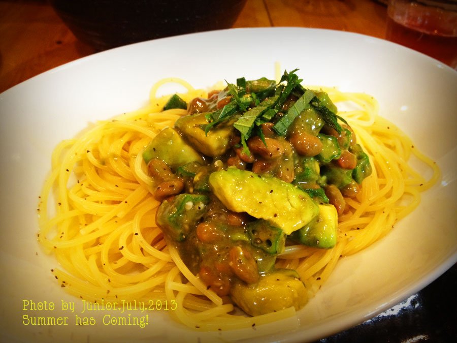 納豆とおくら/アボカドの和風冷製パスタ