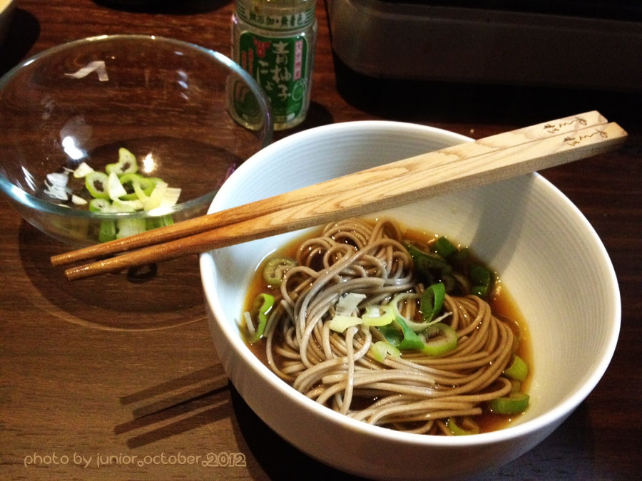 〆に安い乾麺の蕎麦を放り込む 暫く外食もしてないがこれなら家で充分だろう