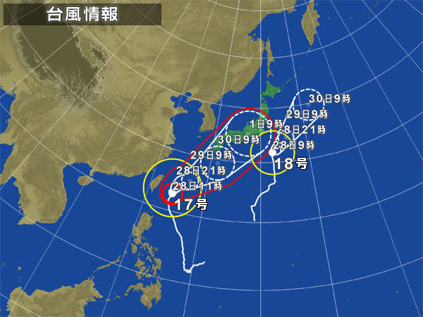 18のピークは今日? そして17号は昼のNEWSでは速度をさらに落とし