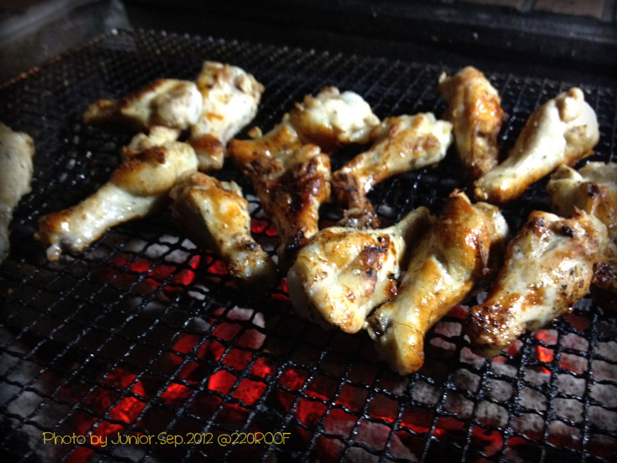 火が通り辛い手羽元を酒蒸しして岩塩でグリル