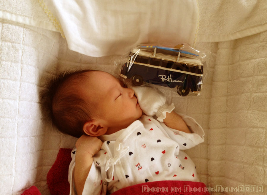 すると泣き止んで静かに寝息を立て始めた... おまえもVW乗りになるのか?