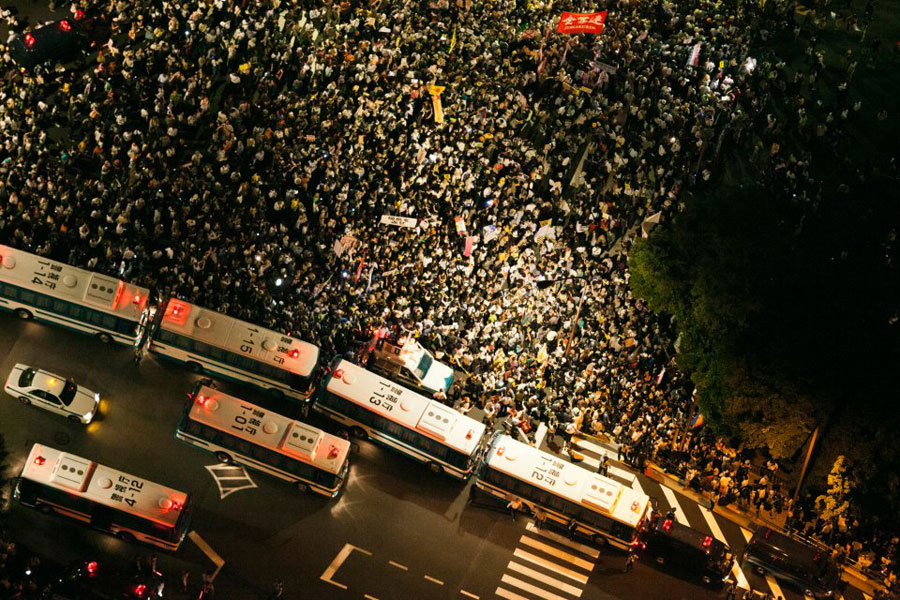 現場で抗議した人々は機動隊によって強制排除された....