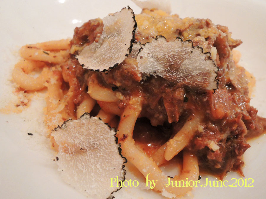 ラグーソースとトリュフの手打ちピーチパスタ