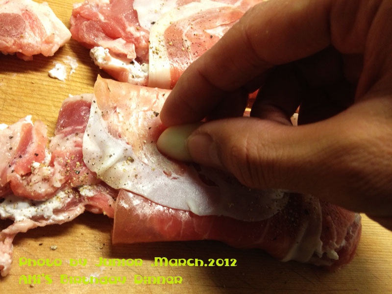 本日のメイン 【黒豚のリコッタチーズ生ハム巻き 洋風カツレツJunior風】
