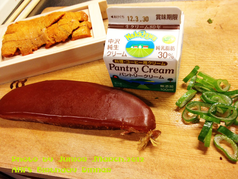 【海胆と有頭海老の贅沢フェットチーネ ボッタルガ乗せ】