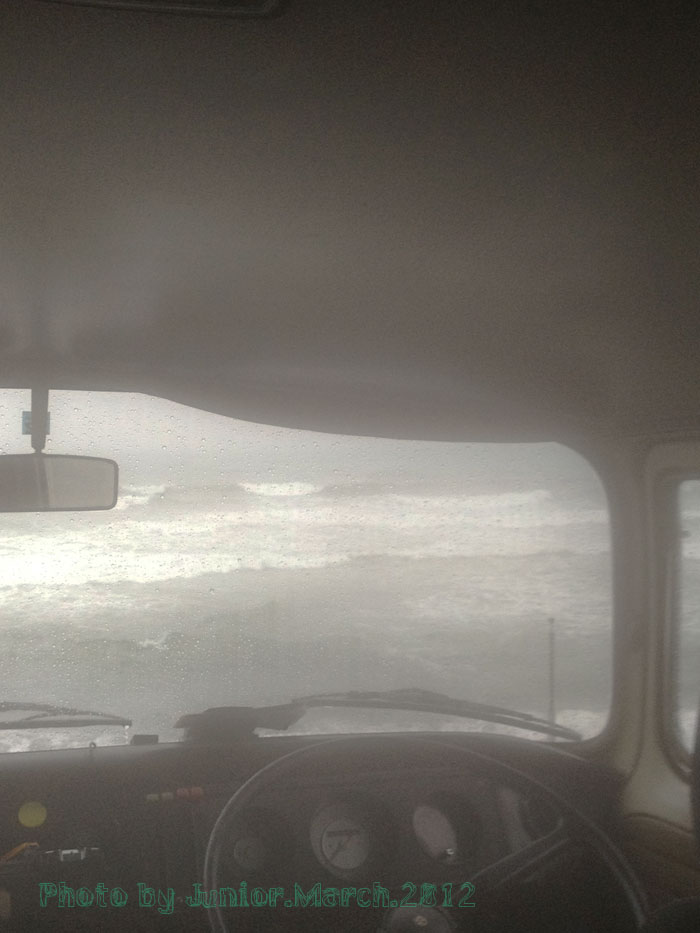 雨脚は一層激しさを増して 風は依然オフショアなものの