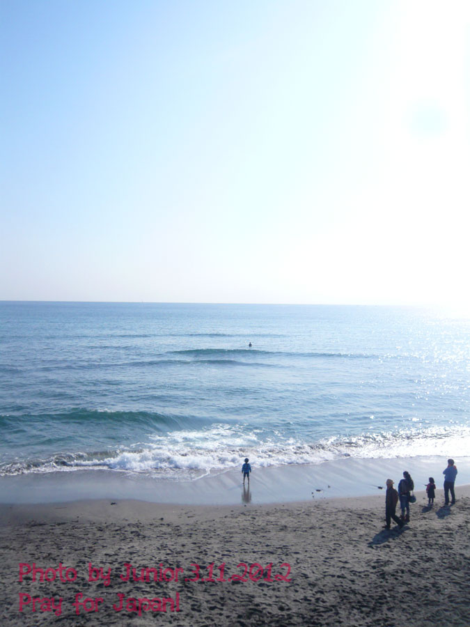 皆でビーチで黙祷 鎌倉プリンスへ