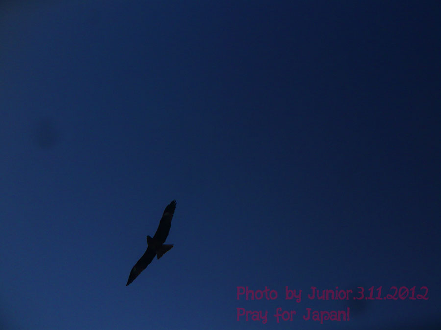 一羽の鳶が俺の脇を翳めて青い空に消えた