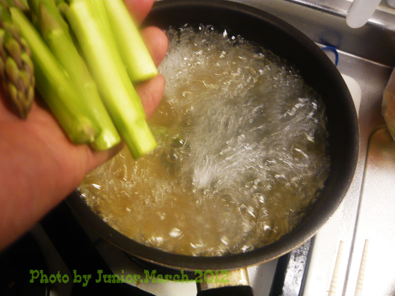 n°11を茹でながら アスパラも一緒に茹でませう