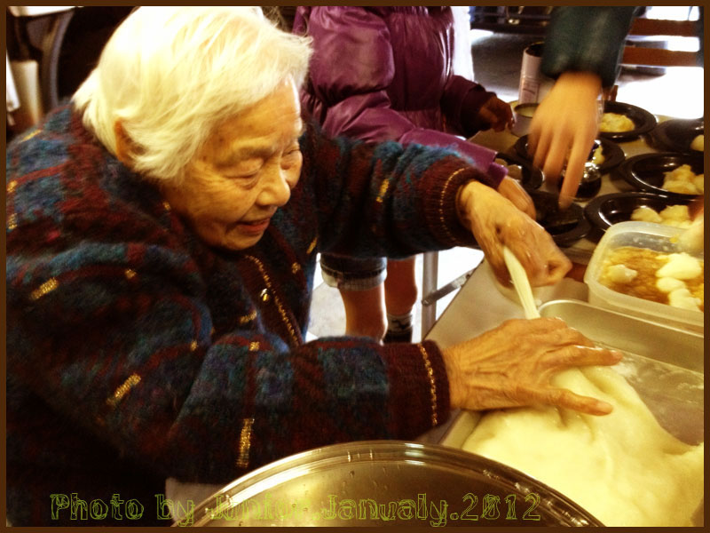 女衆が搗きたてをその場で千切って味付け