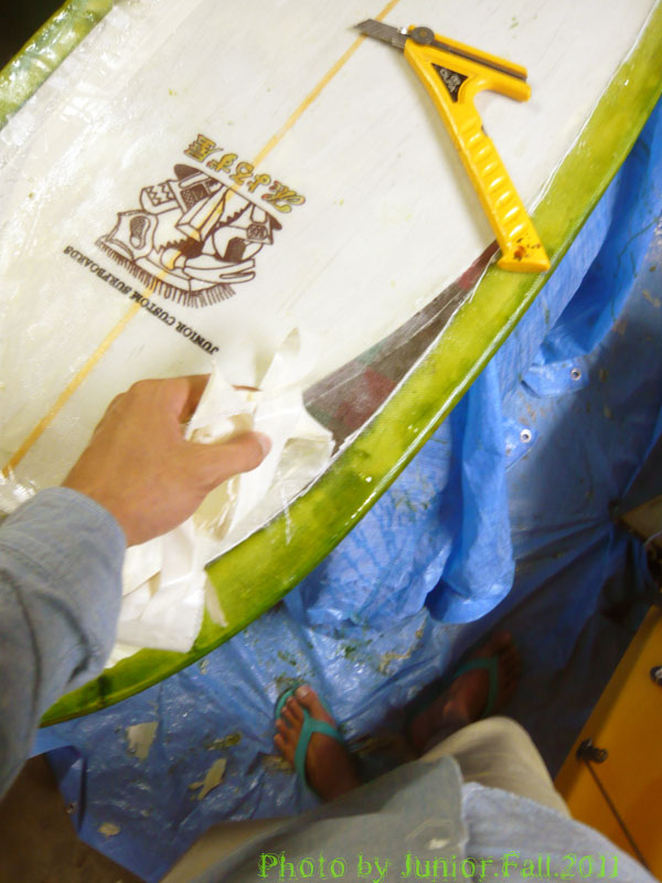 丁寧にラップカットしてマスキングごと剥がしていく
