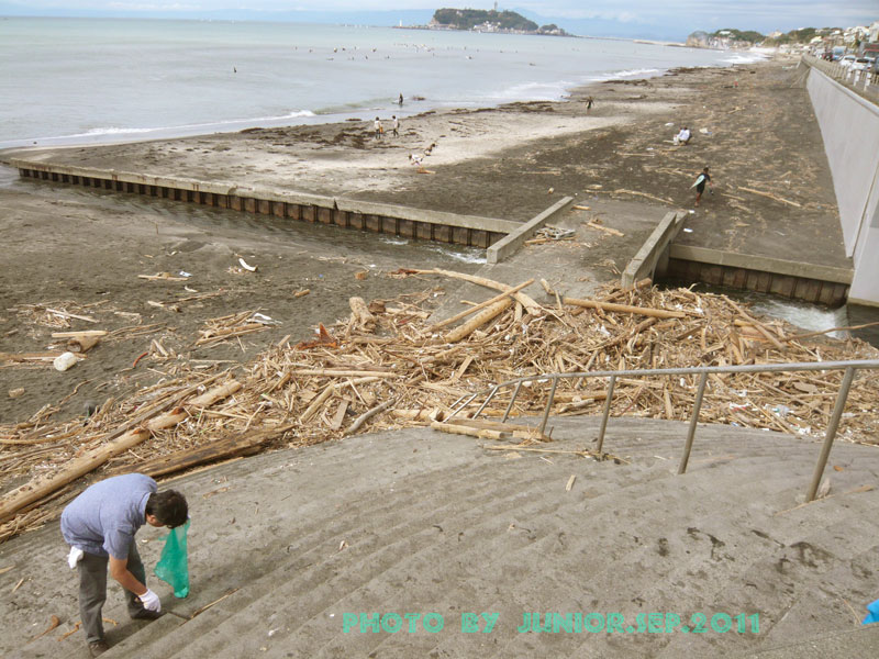 台風一過のビーチク クリーン