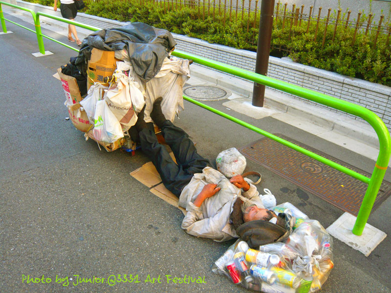 道端に力尽きたアーティストが倒れてる.... 会場は近い。。