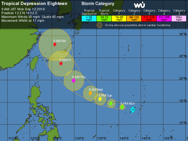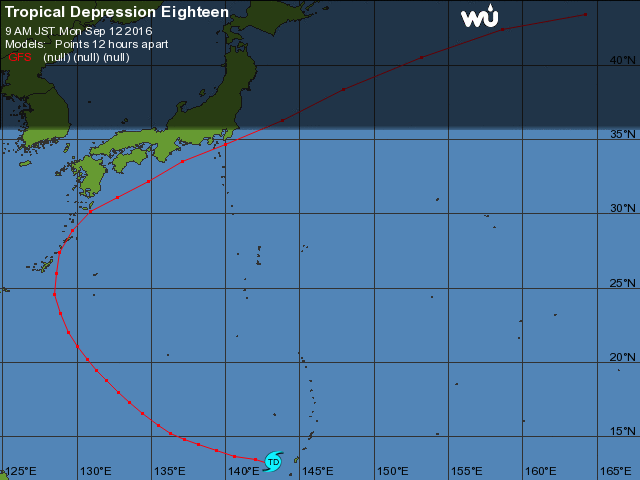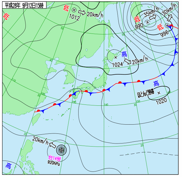 これは16号の予想進路(13日朝のものだから少し古い)