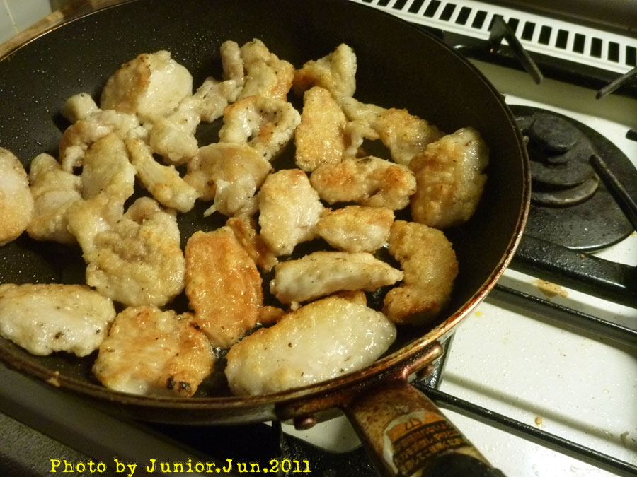 少しのサラダ油&胡麻油数滴でこんがり焼く (気持ちは揚げてる)