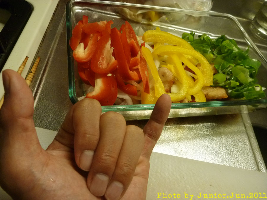 JAH RASTAFALI.... タレに肉がまだ熱いうちに投入 野菜も投入