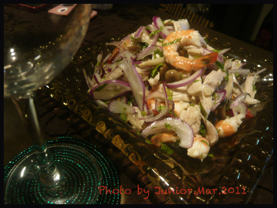 海老、鶏胸肉に紫玉葱と大量のパクチー&鷹の爪をナンプラーで和えれば完成
