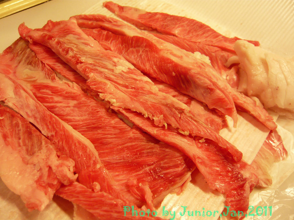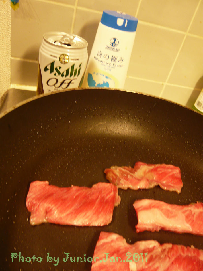 閉店間際に飛び込んだJuniorに薦めてくれた一番安い牛のバラ肉切り落とし