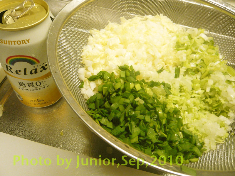 ニラと大蒜、大量の生姜を加え、挽肉と秘伝のスパイス投入