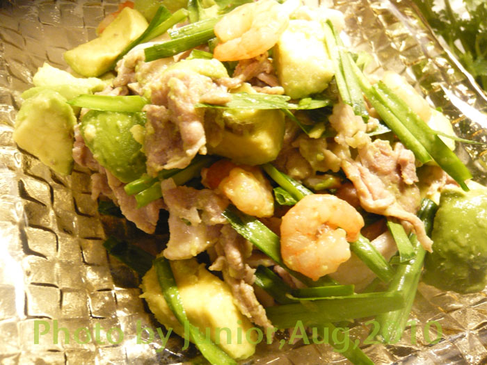 お得意アボと豚肉/海老/ニラのタイ風サラダ