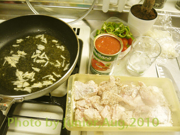 大蒜をOlive Oilで炒め浅蜊/白ワイン投入