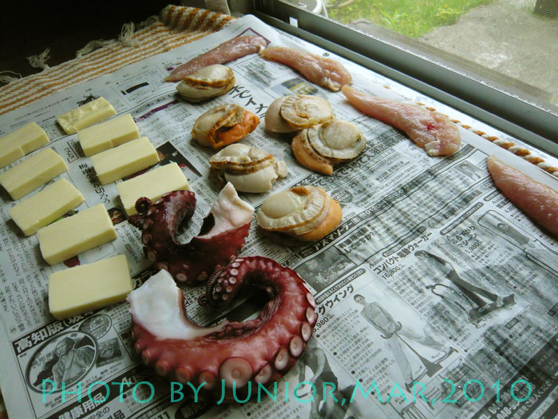 目をつけていた数種類の食材 塩を振り下味をつけて風乾する