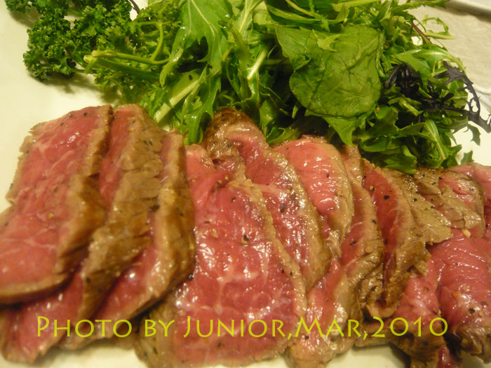 牛もも肉の岩塩グリルJunior風 -ルッコラとベビーリーフと共に-