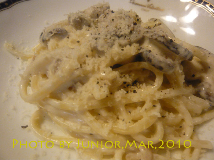 パスタはTanto Tempo特製パルミジャーノと茸のリングイネ