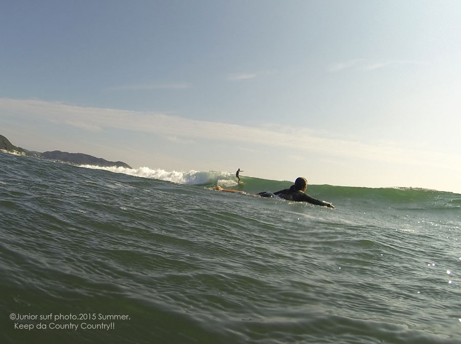 セッション中盤 SETに一本乗れてパドルバック中に姉さんがテイクオフ