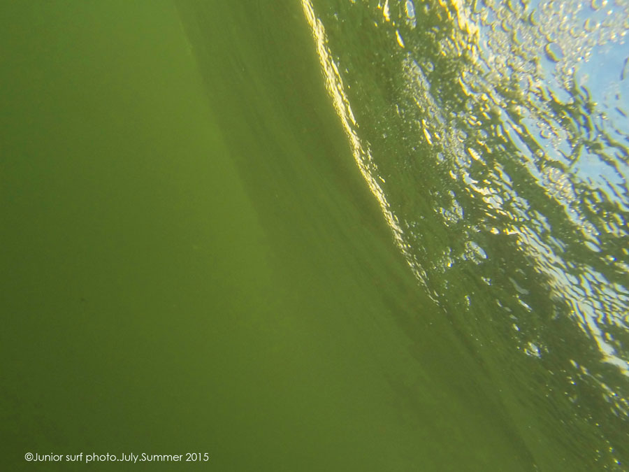 Under water.