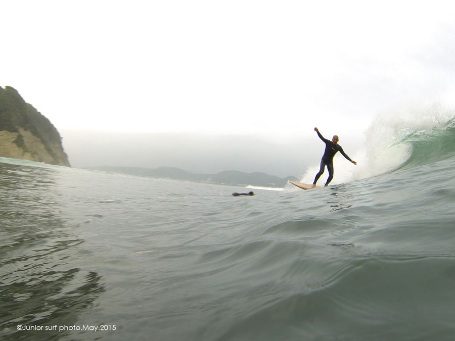 オヤジのように慕うこの人と波に乗る 誰よりも奥から降りるのも側で見守る