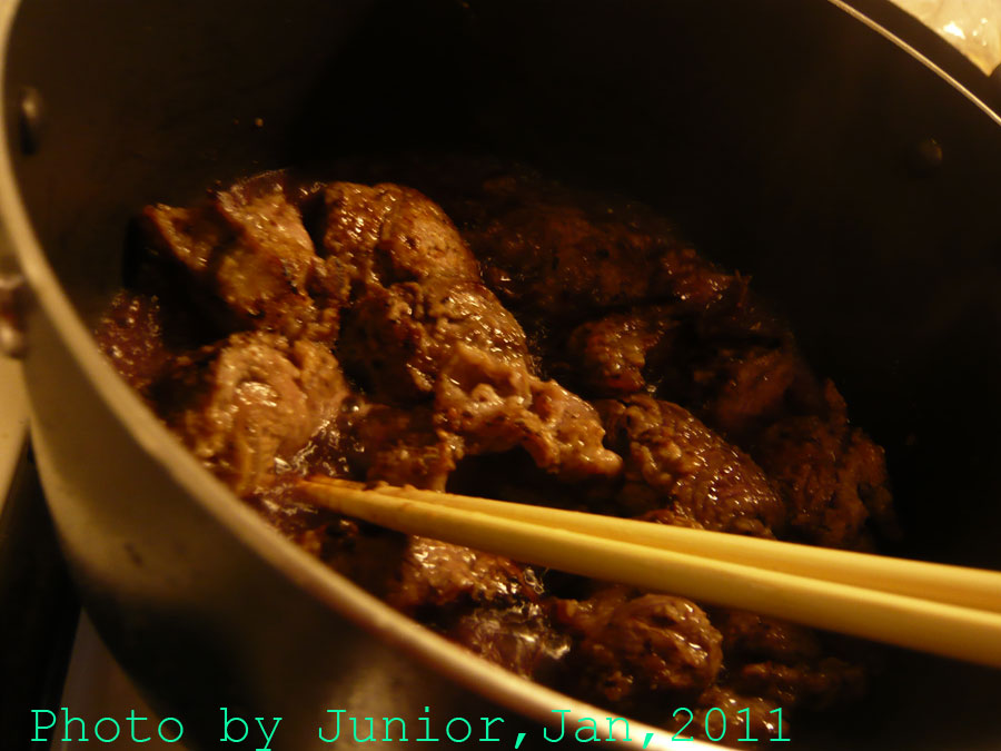 すね肉は下味つけて寝かして小麦粉で包んで強火で旨味閉じ込め成功