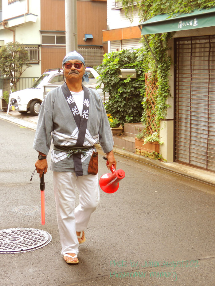 神奈川1丁目は綿花親和会の山車が出た盆真っ最中の12日昼下がり