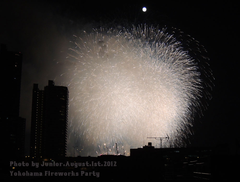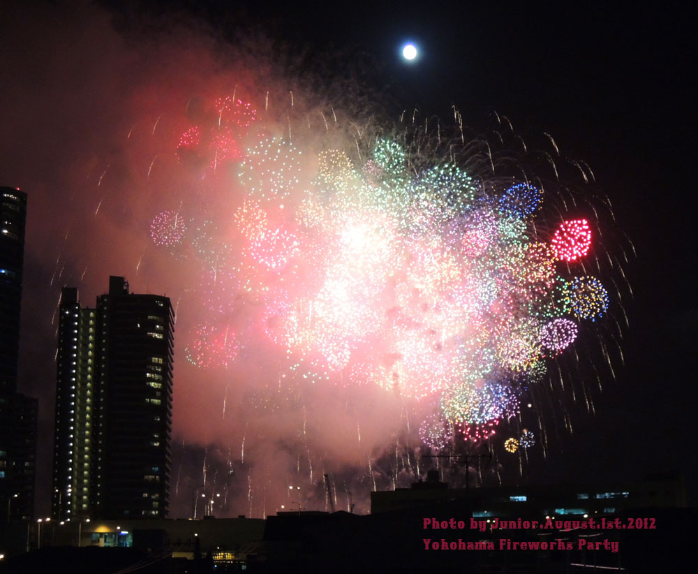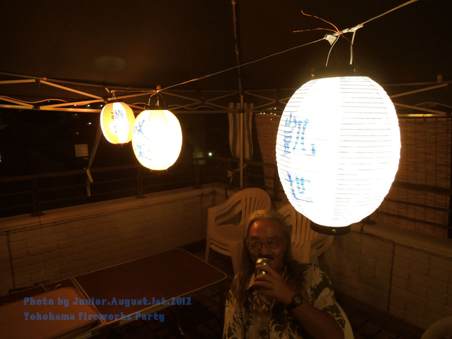 陽が暮れると同時にハイセンスに並べられたコンテナがライトアップされる