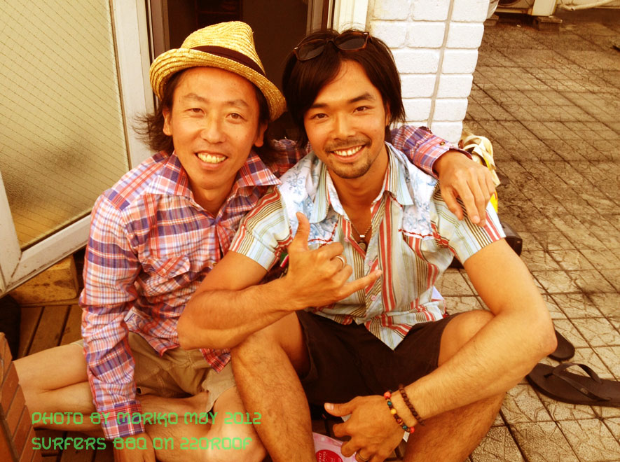 よく見えないのは逆行のせいではない 3人共 日焼けし過ぎてるだけ... Surfaholics.