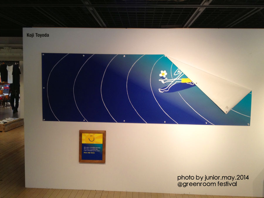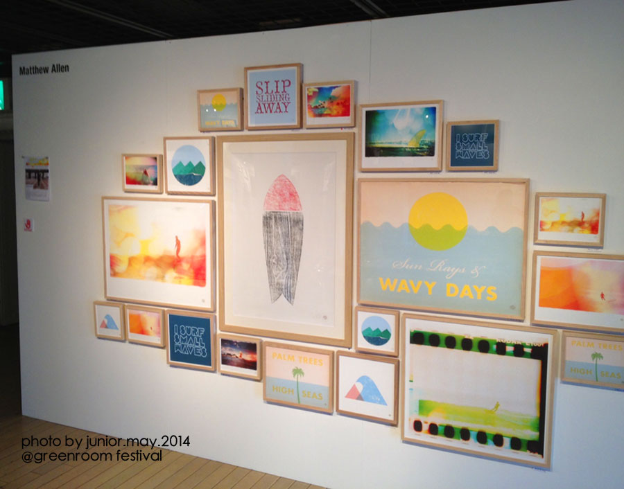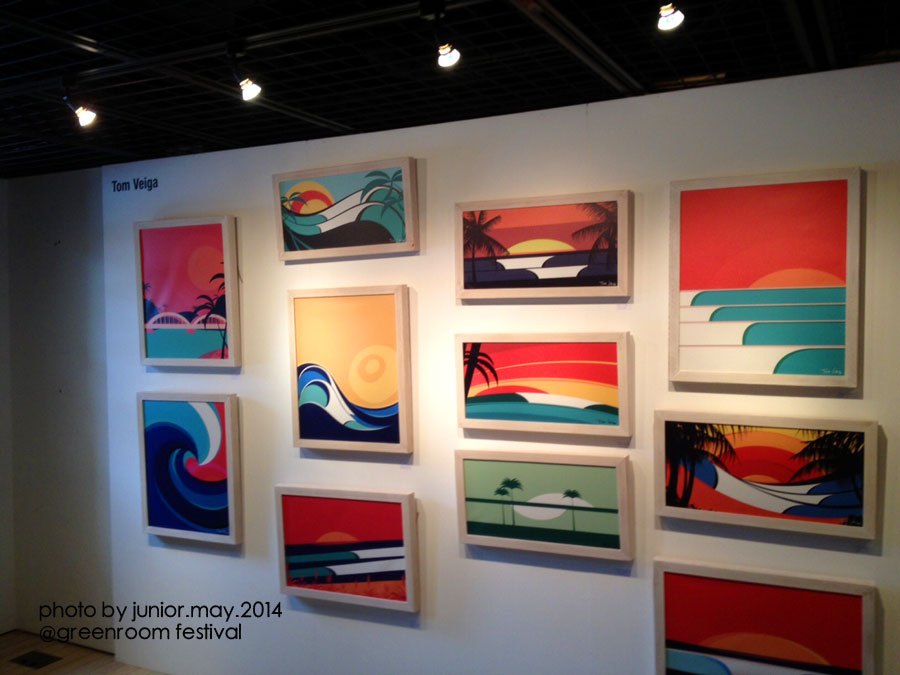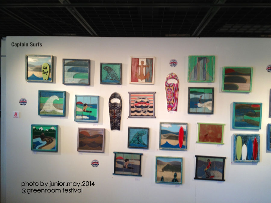 SURFERS JOURNALのブース、泰介さん、YOGEさん、Danny HessやHeather、