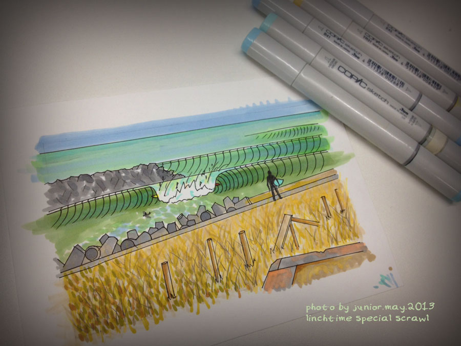 コピックでは草むらの描写に限界を感じ水彩のパレットと細筆をひっぱり出した